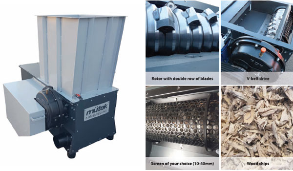 The crushed material (must be smaller than 2cm) is suitable e.g. for further briquetting with our muetek briquetting presses.