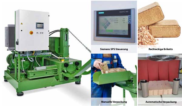Прочный и износоустойчивый матричный пресс, подходит для многосменных предприятий. Производительность: ок. 100-1000 кг/ч. Форма брикета: прямоугольная.